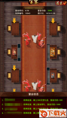 参加宴会需要交付元宝礼金,交多少元宝,可以获得和元宝相等的积分(积分用来兑换资源)每日限赴宴三次