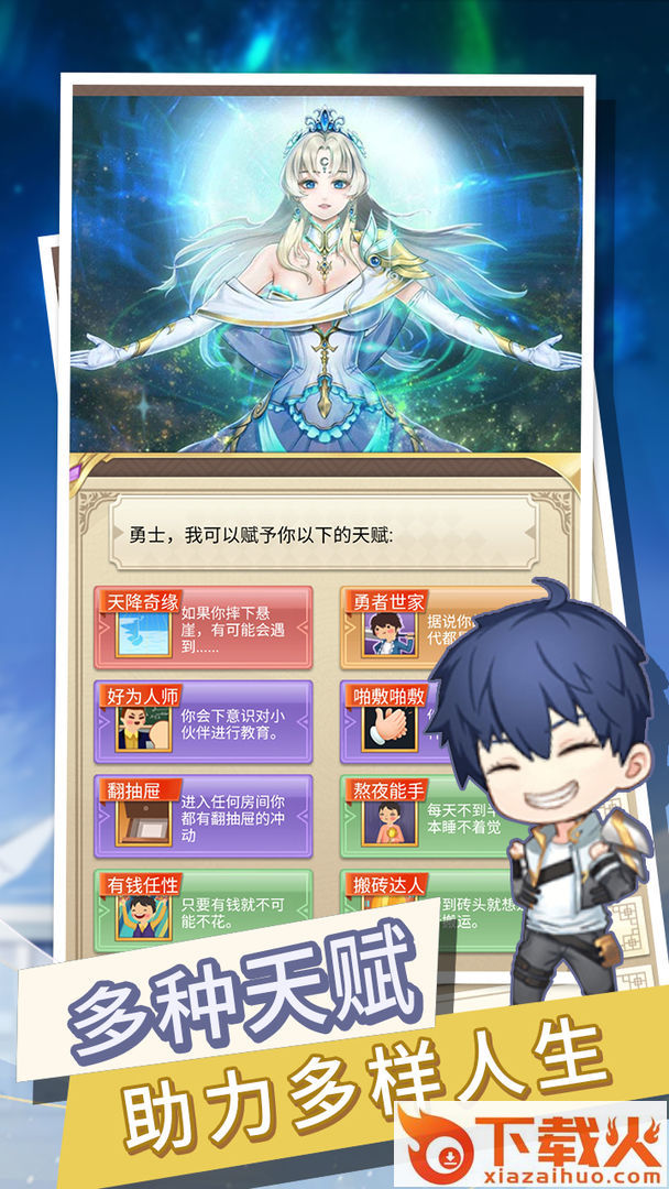 转生成勇者却成为海王,一款文字冒险玩法的手机游戏,转生成为异世界的海王,和妹子们来一起守护这种充满怪物的世界,解锁各种成就,加点天赋,挖掘无限的彩蛋,要记得你的使命。