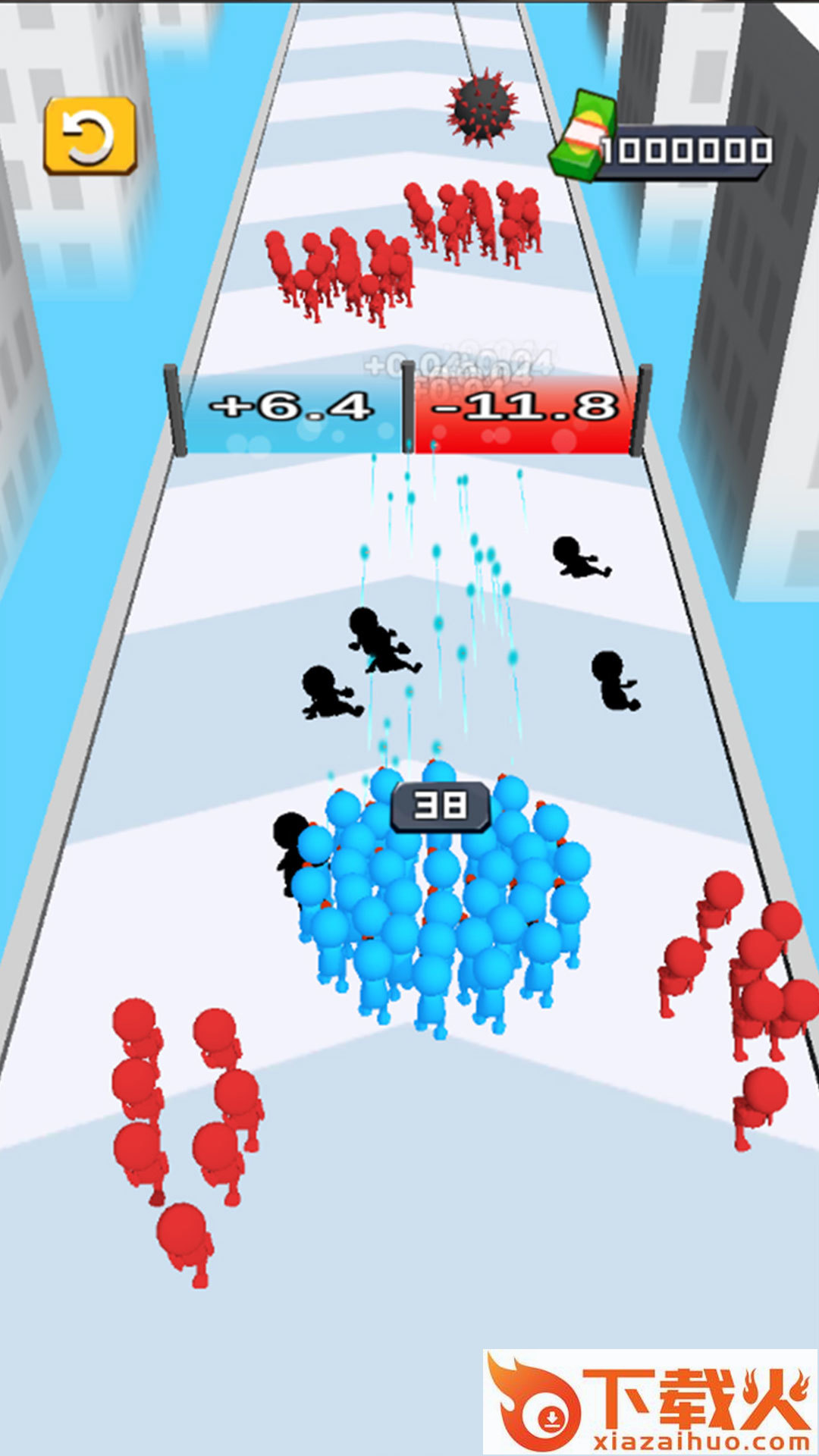 这是一款火柴人休闲跑酷游戏。火柴人的攻击可以增加光门的增益数值,选择最佳的大门,攻击它提高数值,经过它壮大你的火柴人队伍,然后将火柴人战士聚集在一起。躲避道路上的各种障碍和僵尸的袭击,尽量使你的火柴人队伍存活到最后,存活的人数越多最后得到的奖励也就越丰富。