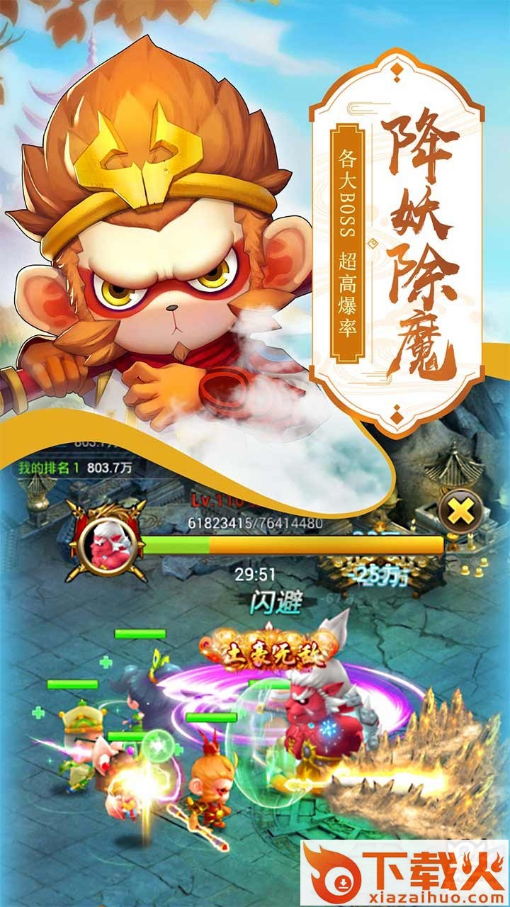 游戏讲述猴哥在被天庭镇压之后利用分身回到人间和玩家一起寻找这故事背后的真相,游戏剧情轻松诙谐,风趣幽默,游戏六大职业任意选择,专属随从技能,提高了玩家之间的互动。...