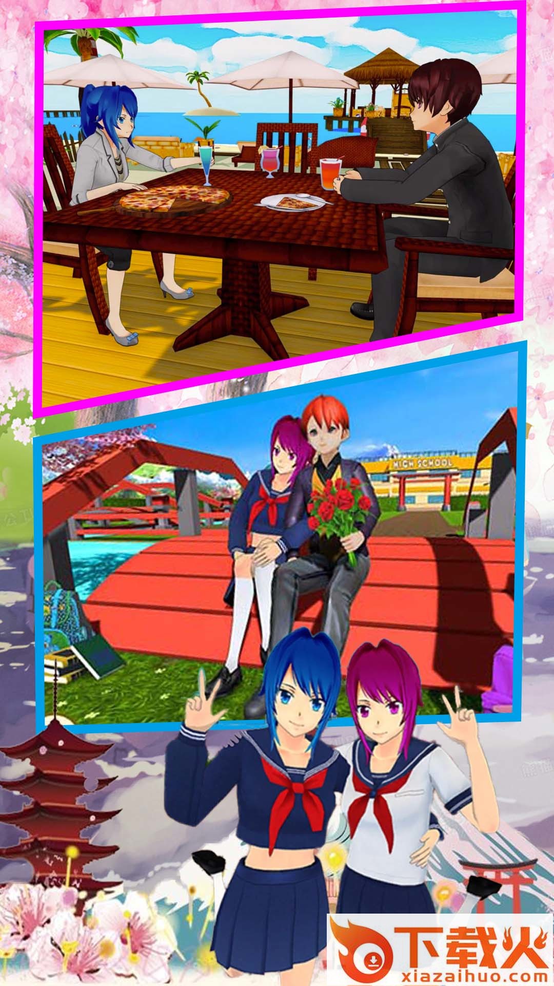 1、游戏采用高清的3D画质,再现真实的樱花校园,很多的帅哥和美女出现。