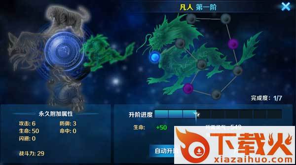 每个境界分为九个阶段,玩家每修炼完就可以升阶到下一个境界,每升级一次阶段都会得到不同的永久附加属性值加成。