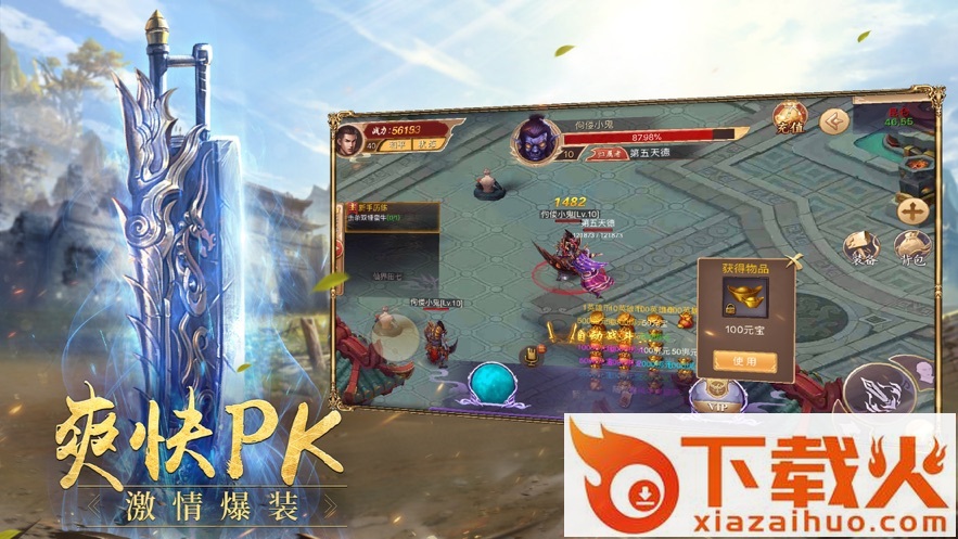 2、宝刀在手,屠龙对决,神器装备,自由更换组合,决战皇城,boss轻松秒杀;