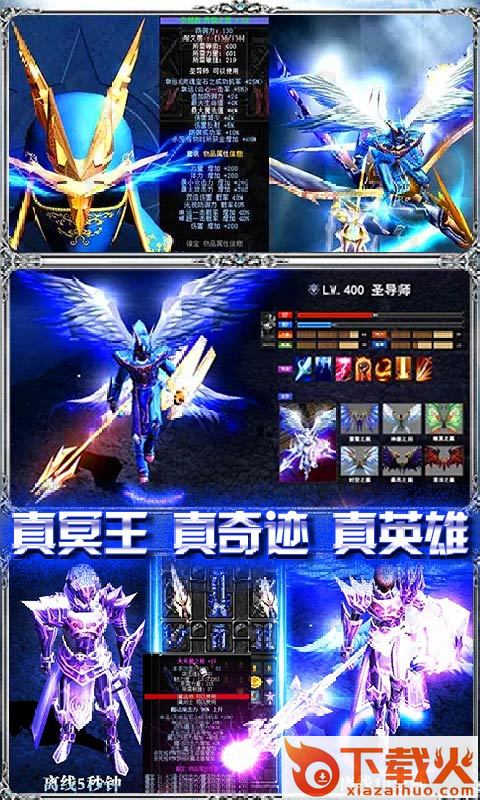 传承传奇经典战法道玩法,但是又稍加改造,三大职业相互克制,野外神装百分百掉落,平民玩家不再受苦受累,装备可以自由交易,游戏不但还原了传奇的经典元素,更融入了一系列的创新玩法。