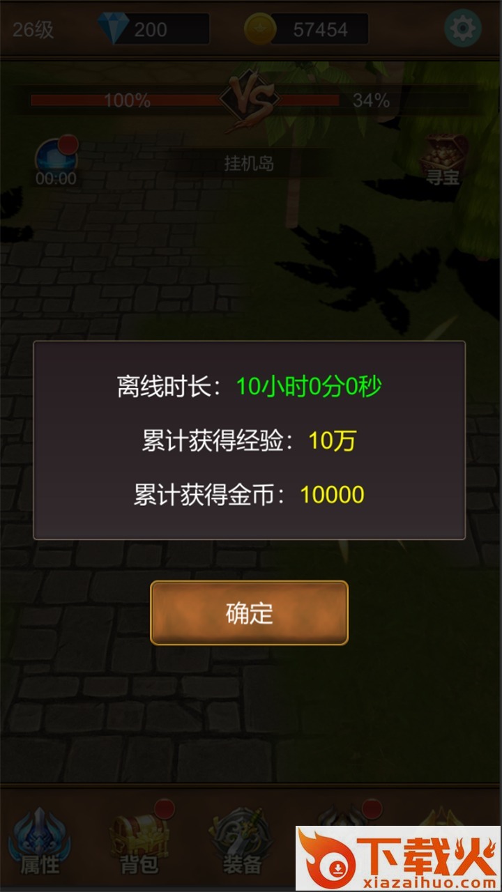 副本掉落材料、装备提升、经验升级、提升战力,离线也有收益。