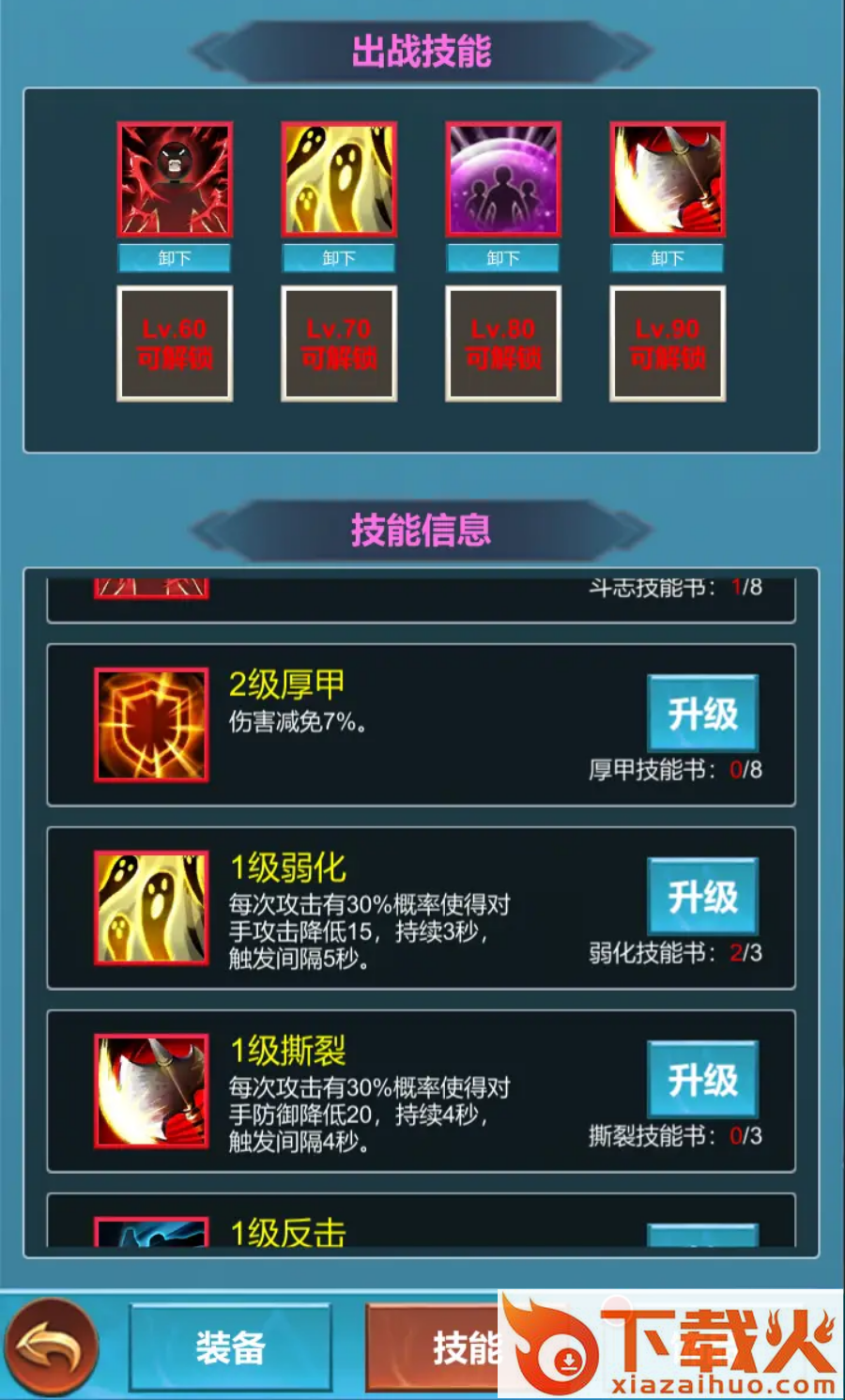 3、强化系统,英雄进化,进阶,集齐灵魂石进化英雄,英雄成长更快。