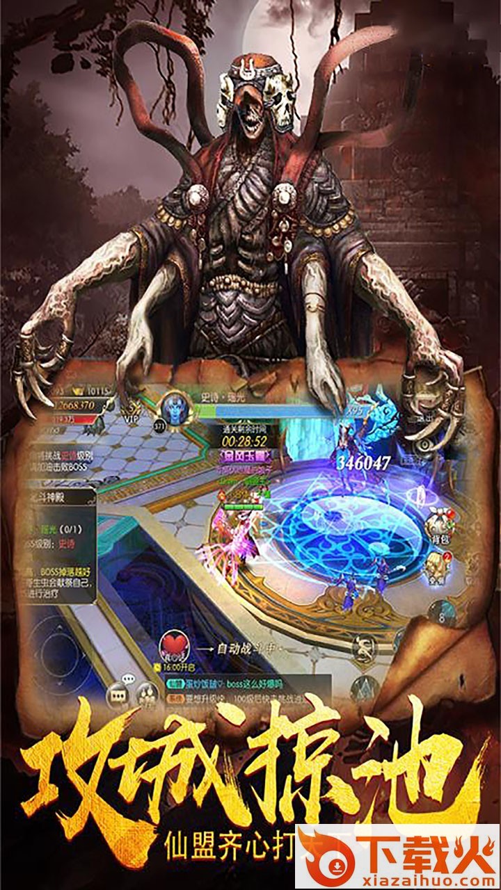 斩妖除魔撩妹邂逅两不误,人生赢家就是你,炫酷技能,华丽外装,3D特效爆炸秒杀全场,跨服对决,混战遇强敌,野外战个痛快。