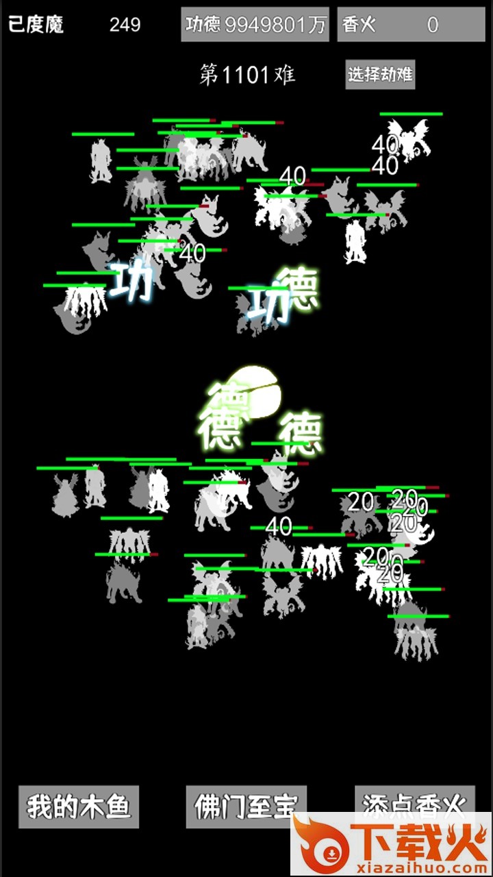 我用木鱼来渡魔游戏在敲木鱼的基础上增加了很多rpg玩法,想在木鱼游戏都在卷了,简单的敲敲木鱼已经不能满足大家,可以点击木鱼来打败所有的妖怪恶魔,等你获得足够的修为功德,可以放置来超度一切呢。