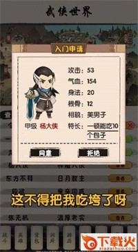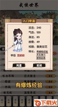2、有很多侠客可以选择培养,不同的侠客有各种属性可以选择。