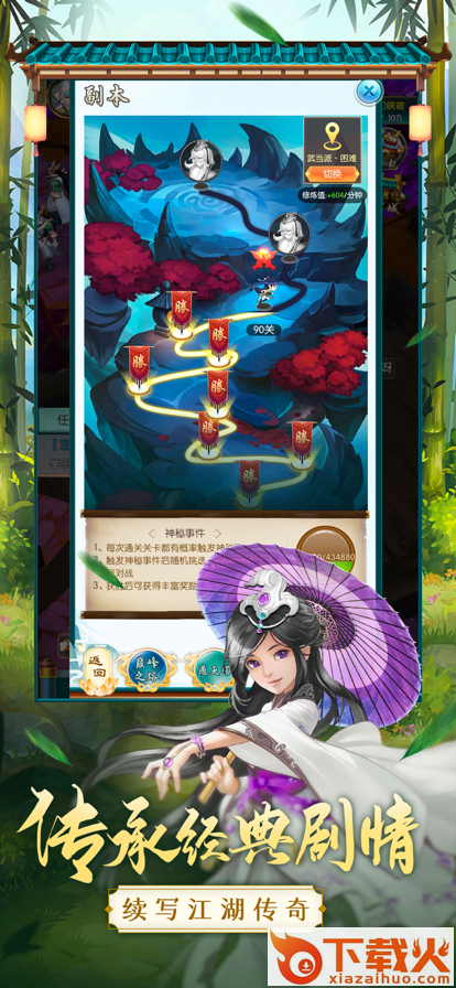 8、各自拥有不同天赋与独特的武功技能,带领玩家体验各种侠义豪情,称霸武林