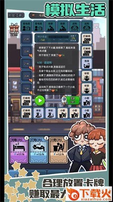 3、休闲的模拟打工人生游戏,玩法非常丰富,将行动卡牌插入你的24小时生活,合理分配时间,获取更多收益。