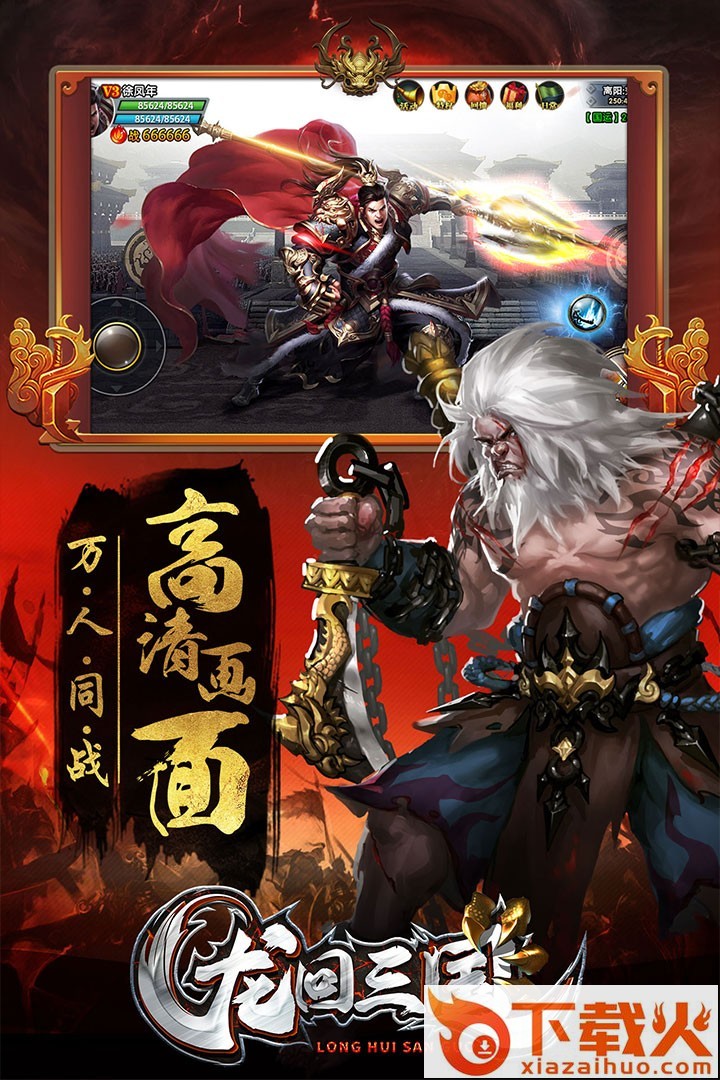龙回三国是一款激情四射的骑战国战手游,游戏装备自由交易,炫酷技能秒杀全屏,3D高清画面,万人激情竞技,华丽外装羽翼随意搭配,让你激情PK,畅爽国战。...