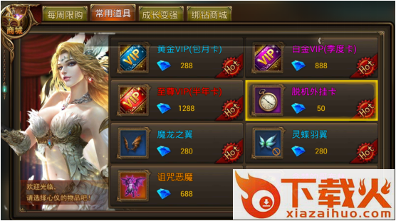 3)也可以直接去商城购买,50钻石即可获得1张5小时的挂机外挂时间了。