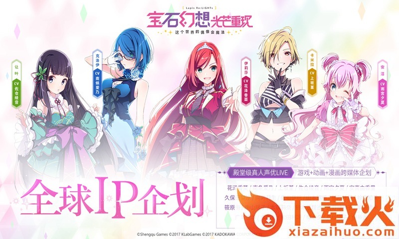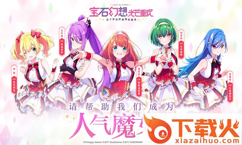 在《宝石幻想:光芒重现》中,来自霓光(LiGHTs)、四重异奏(IV KLORE)、花为乙女(この花は乙女)、口袋甜心(シュガ�`ポケッツ)、小恶魔糖果(SadisticCandy)、超新星(supernova)中的20位性格迥异魔女(偶像)组成风格各异的小分队,与你邂逅。