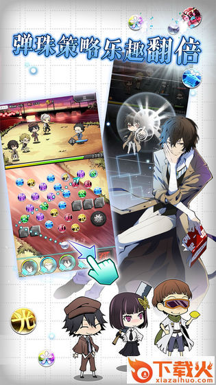 玩家可以组建心仪的《文豪迷犬》组伍,只需一只手指轻松弹射珠子,便能将盘面不同属性珠消除,发动攻击。如能一击全消盘面,更可触发额外追击,将敌人一举歼灭。