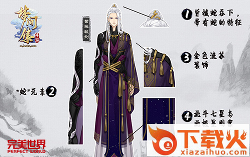 《梦间集》手游中,角色们身上的服装、配饰、颜色等搭配也都是经过缜密思考才最终定稿的。“紫薇”通“紫微”,而紫微星则代表帝王。说到帝王,最适合的颜色无非是高贵的紫色与华丽的金色。所以,紫薇软剑的服装采用了紫色作为主体颜色,象征着帝王之物――“冕旒”的金色流苏作为配饰。发冠与衣袖上蛇的图案,则代表着紫薇软剑的过去与经历。除了服饰特征之外,游戏中的紫薇软剑举手投足间也流露着帝王的傲气。高贵冰冷的气场,俊美的面容,却只可远观不敢亵玩,怎能让人不心痒呢