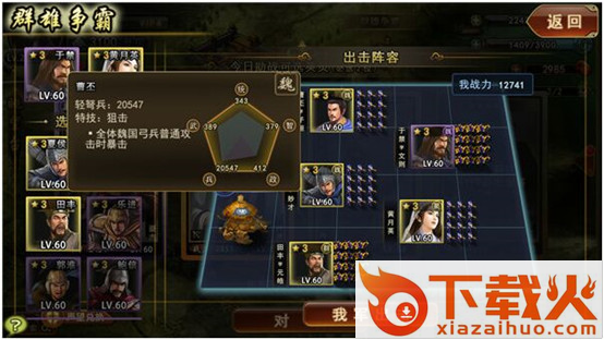 在“群雄争霸”中,所有玩家一视同仁,都必须选定系统指定的武将2人,另外最多增派3名自有武将。所有武将无级差均拉平到60级,进化至3星,满属性状态,并开启所有特技。另外粮仓也被调制中等水平,偷粮也不失一种致胜策略。此玩法力保玩家在一个公平的环境中角逐。