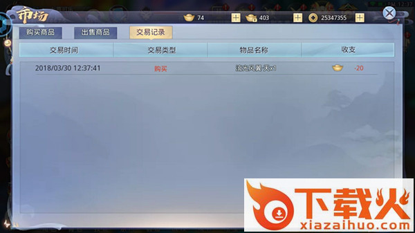 仙友们可以在交易记录界面查看到交易时间,交易类型物品名称以及收支详细信息。