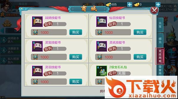 排名奖励的竞技点可在商城兑换多种成长材料