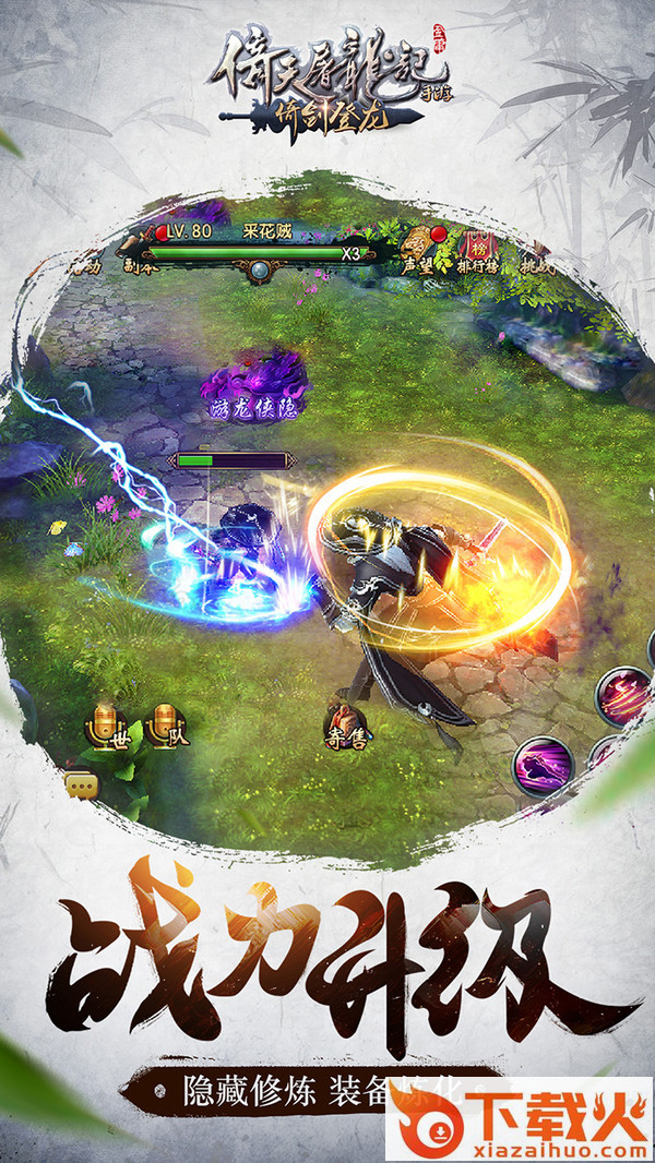 3:伤害减免隐秘提升,化身隐世高人,轻松击溃往昔劲敌。装备炼化培养专属神器,再现倚天屠龙神威