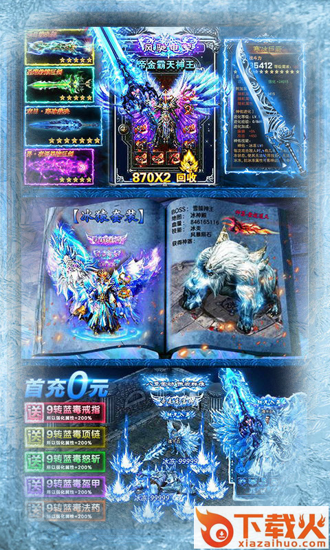 王者冰雪为你打造热血传奇征战,给你带来经典的传奇冒险,你将在游戏中收获更多的乐趣,你将用你的宝刀来攻击各种boss,获得装备和武器,在游戏中组队攻沙,同屏抢宝,好玩不累等你来,欢迎各位下载试玩。