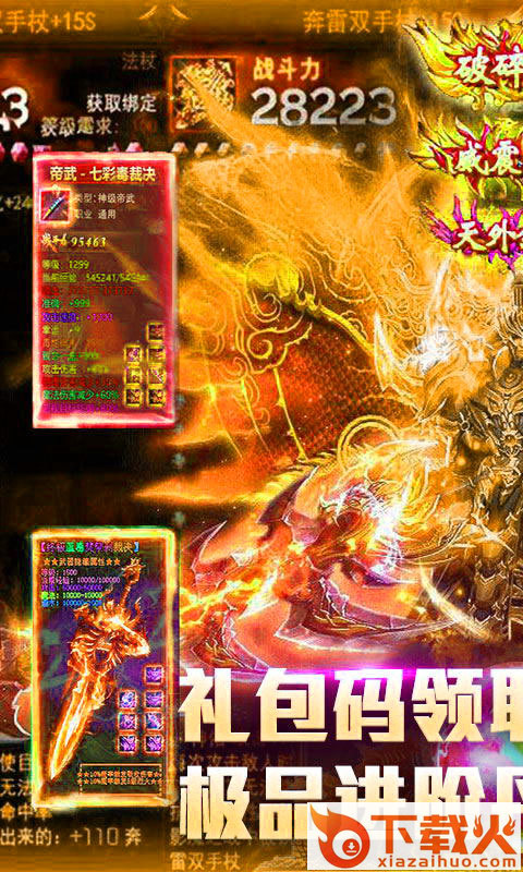 3、野外夺宝、红名爆装,竞技场,让你酣畅PK;