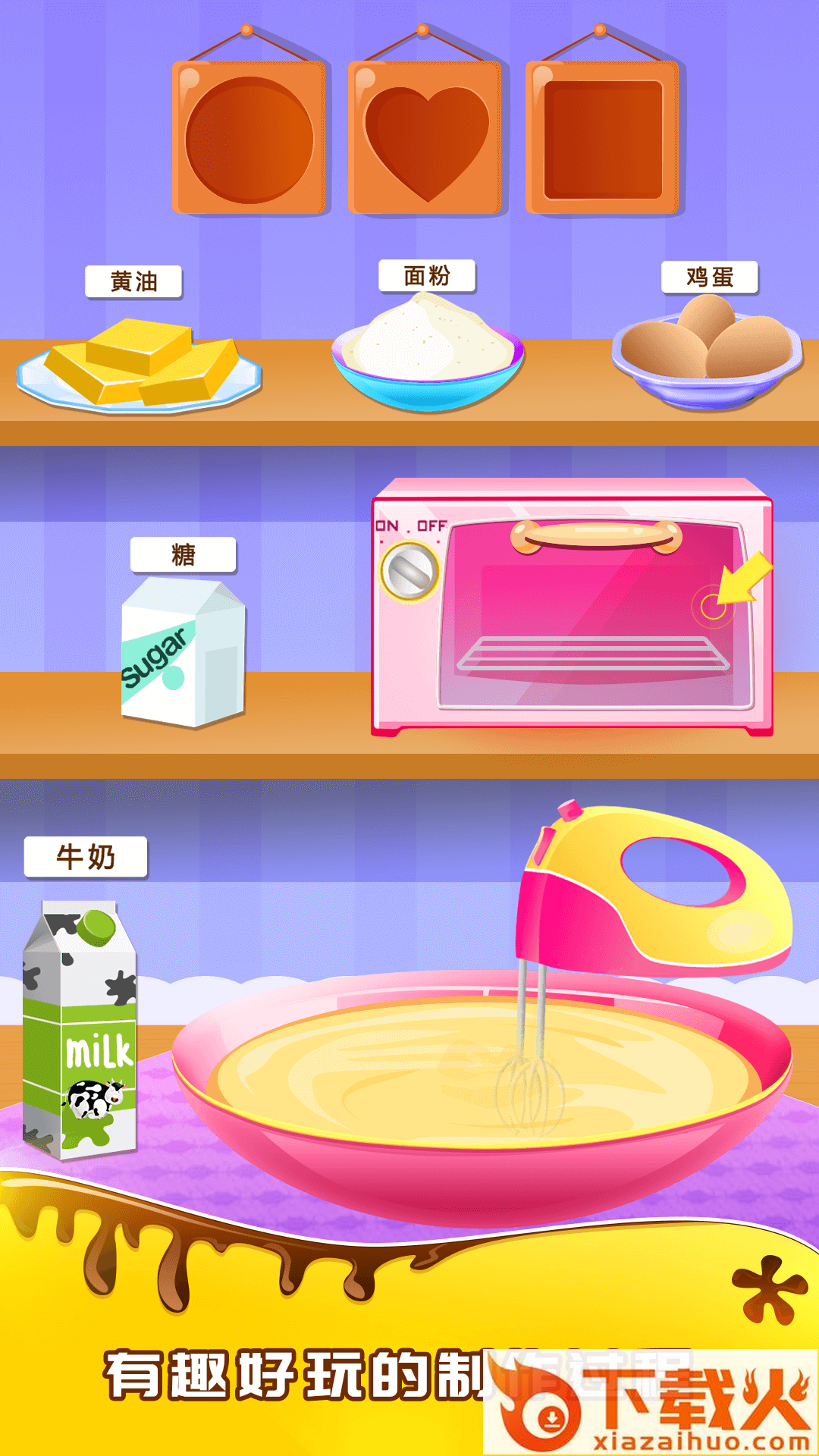 让孩子在游戏中获得快乐和培养创造力。同时蛋糕制作成功之后还有拍照留念功能,我们可以把制作的成果分享给朋友分享。