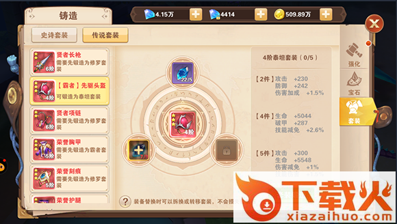 三、套装打造(分为史诗套装和传说套装,在史诗套装激活后才可以打造传说套装哦,套装石的获取方式是需要打首领会所里面的boss才会掉落的)