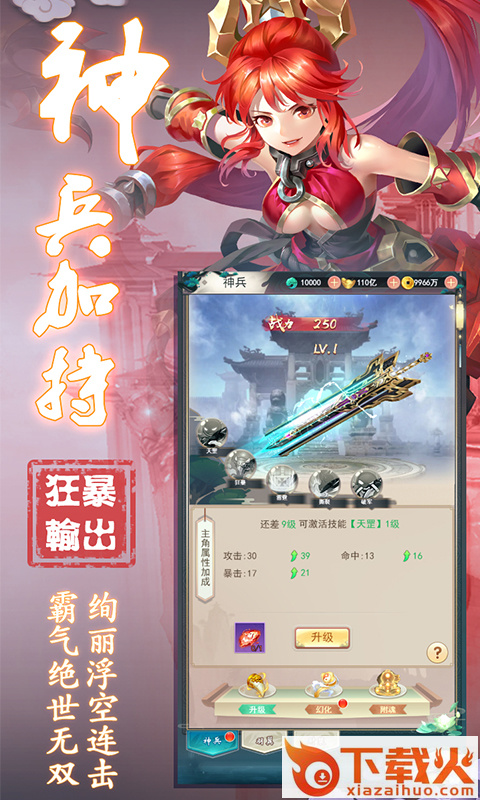 5、战斗轻松,弹指间BOSS妖魔灰飞烟灭,平息三界动荡;重走仙侠路,持神兵利器,斩妖除魔;打造橙装,吞噬龙魂,锻体强魂,培养人物;神羽降世,飞天遁地;经典战法道相伴闯三界,创帮会,与兄弟制霸天下。