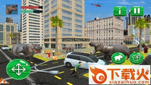 1、我们可以操作河马千万繁华的城市,在城市的街道上横冲直撞,将小汽车顶翻,将路灯撞倒。