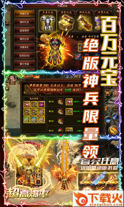 2.创建角色就送vip15,还有大量的绑定元宝和绑定金币,分分钟就能成为土豪rmb玩家,还有许多奖励签到和登录免费赠送,完全不用担心氪金的问题。