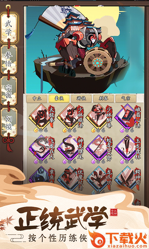 2、新增觉醒皮肤功能,觉醒皮肤将完全改变武侠技能、武学、化形效果,本期更新推出【峨眉掌门】端午限定觉醒皮肤,可从图书馆获取皮肤碎片,后续秘境中也会增加产出;
