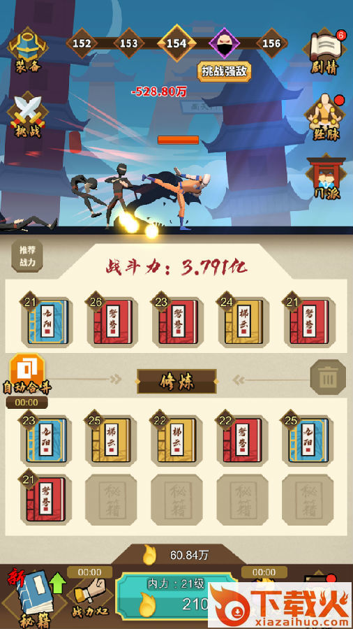 1、选择不同的角色和门派修炼,掌握更多的技能