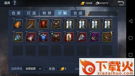 可以通过品质筛选,对同品质或全部装备一次性分解。