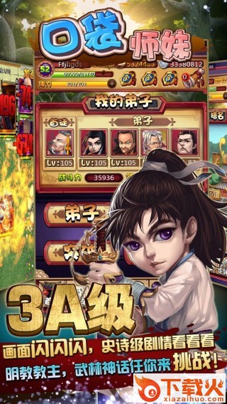 口袋师妹是一款非常经典的武侠题材的角色扮演手游。游戏人物可爱Q萌,剧情丰富精彩,玩家在游戏中需要收集训练自己的卡牌英雄为自己而战,还可以通过升级突破提升境界来增加小队战斗力。精彩对决侠客培养,战斗热血激情永恒,萌萌侠客结交江湖知己,可爱师妹相守一生!精彩师徒任务让