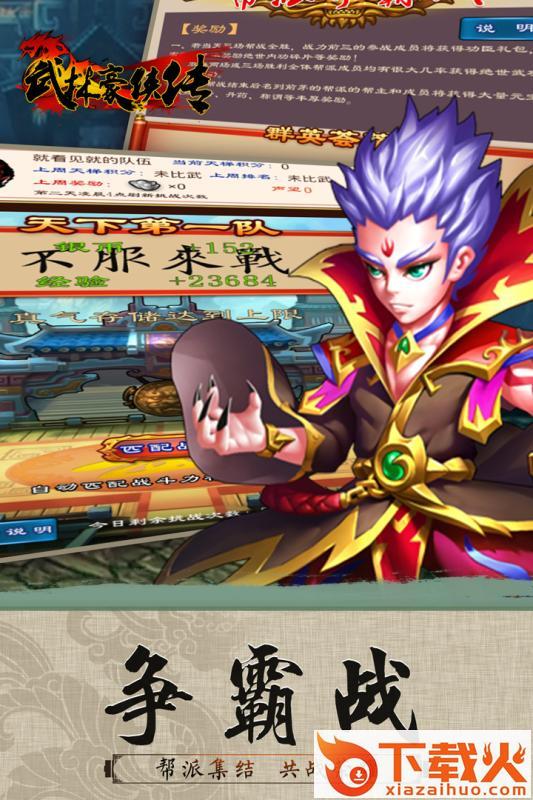 武林豪侠传是一款经典的武侠题材手游。在金庸笔下的江湖传说,让我们一次次的沉迷于刀剑乱舞的武侠世界。游戏以各式侠客为主角,神乎其神的武术技巧为特点,刻画宣扬侠客精神。游戏为玩家准备了比武系统,好友系统,武功系统等系统,还有少林派,武当派,丐帮,清虚门等八大门派供玩家选择,满足玩家不同的需求。更有各式各样的装备,有熔炼和打造功能,搭配自由的宝石镶嵌,打造出只属于你的惊世神兵。玩家还可以自创武功,独创套路,独领风骚。喜欢武侠手游上网玩家千万不要错过这款经典之作哦!