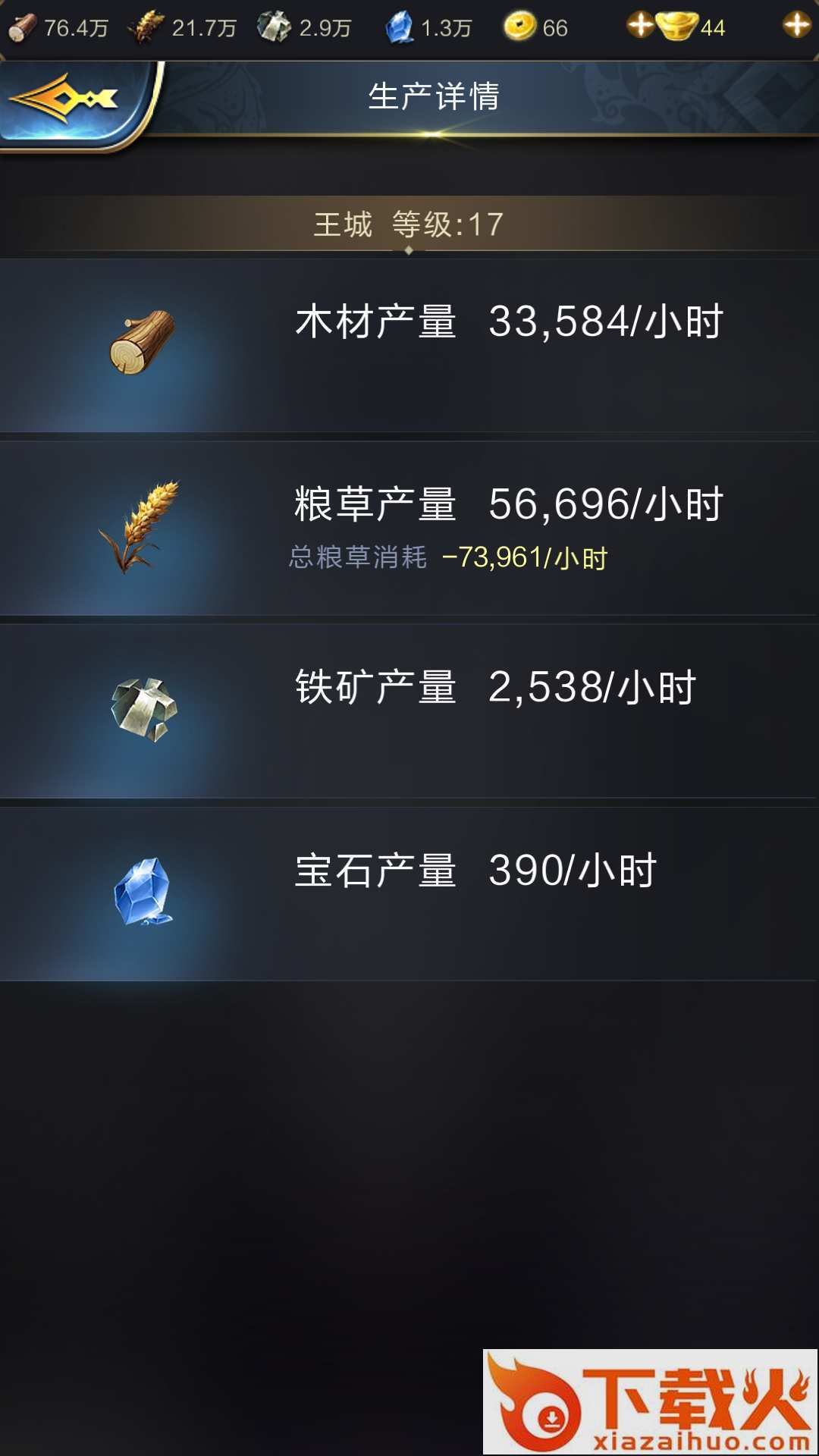 如上图所示,图中城池所有资源田均达到14级,并使用了一些生产加成道具,但是我们能看出资源产量仍然不高,即使立刻获得5小时资源产出也不是一个很大的数量。如果丰收技能能像辅助天赋的能工巧匠技能一样只有4小时冷却时间的话,我相信大家都会点出这个技能,可惜冷却时间不短,效果在前期却不强,所以很多老司机前期对这个技能基本都不会选择去点出。