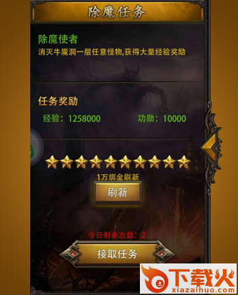 除魔任务按照难易程度划分为10种星级,星级越高任务越难,但奖励越丰富