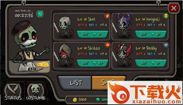 2、新奇的升级方式,各样的装备和骷髅一起升级,升级骨头的强硬度并学习人类的战斗技能。