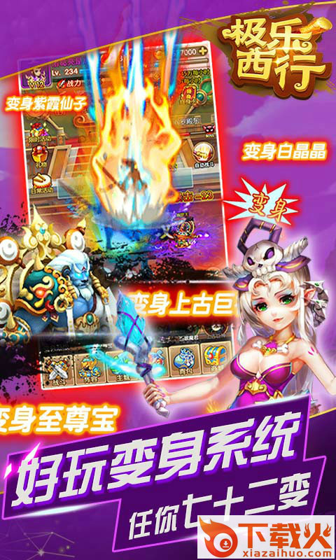 《极乐西行》带来了全新的趣味玩法,绝对会让您惊喜不已。 不仅可以在游戏中探索绮丽的西游世界,召唤种种人物角色,更能让您比武大会、跨服争霸,提升自己实力论战三界!玩家需要不断的挑战一个又一个的关卡,战胜里面所有的妖魔鬼怪以及挑战的BOSS,升级提升自己的实力。开启战斗中的变身模式,至尊宝,白晶晶,紫霞仙子等经典电影人物,“变身”玩法带来的全职业畅玩趣味,让你体验真正的七十二变。