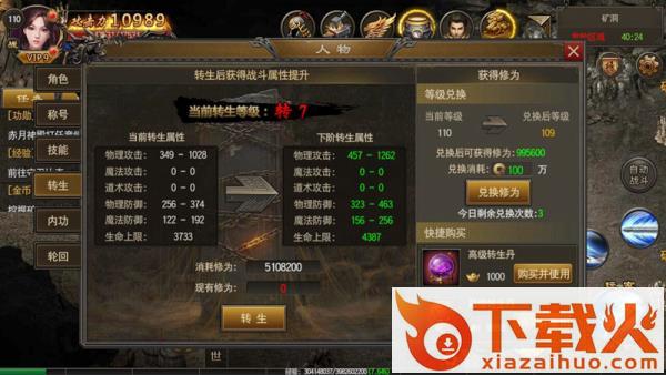 转生最高可12转,转生等级越高人物获得的属性越强大,同时转生后可穿戴对应等级的装备,不仅外形霸气,并且属性强大