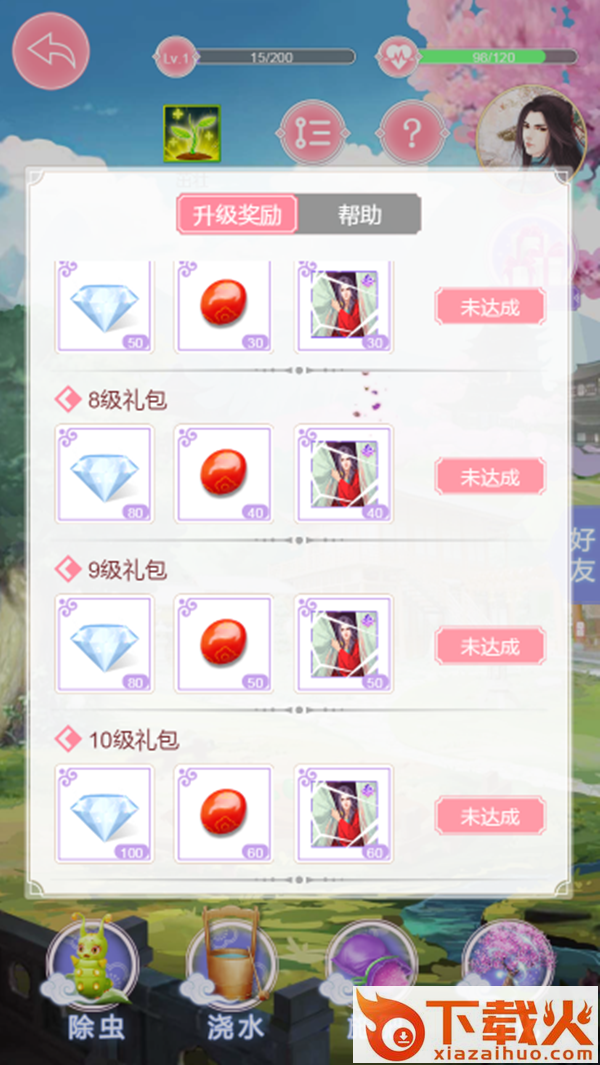 2、帮助好友的爱情树可以随机获得钻石等奖励