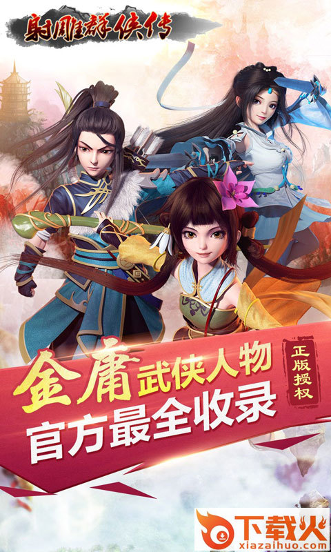 金庸正版武侠手游《射雕群侠传》手游以金庸小说射雕三部曲――《射雕英雄传》、《神雕侠侣》、《倚天屠龙记》为蓝本,2000万金庸粉倾力推荐。百分百还原小说世界,有山有水有江湖,写意武侠精髓真谛,练就神功一统江湖!。目前官方收录金庸武侠人物最全的手游。