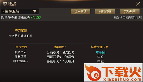 当然,在夺城战中,可以实时看到我的战绩、军团积分等,各位勇士可以随时进行查看哦~