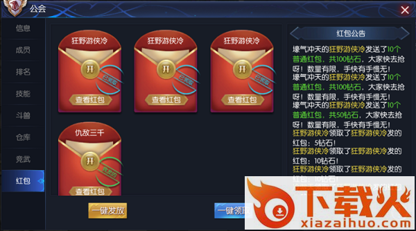 红包:公会自然离不开社交啦,除了各种pve和pvp玩法外,公会还有红包系统,玩家们可在公会发放红包,福利齐享~