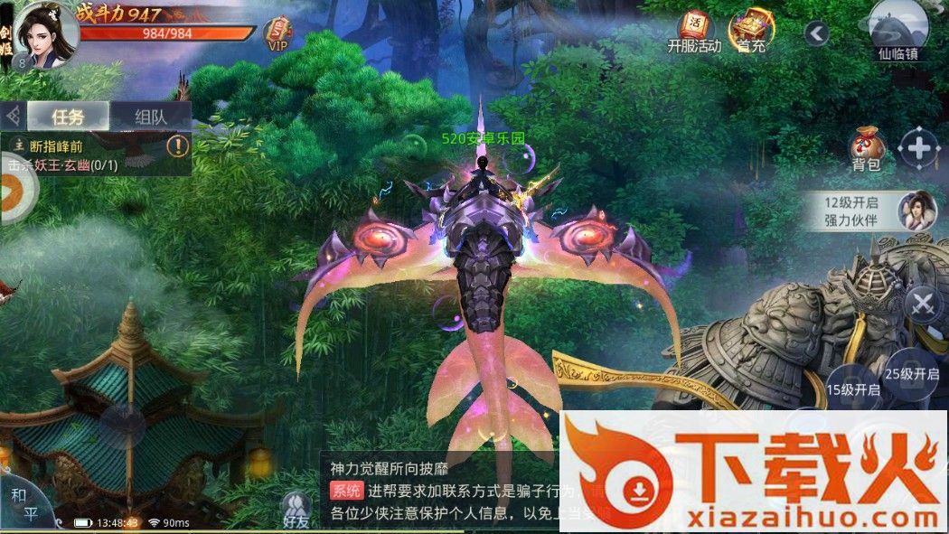 3、极具特色的时装羽翼彰显你的高贵气质,组队交友社交成熟,神仙伴侣甜蜜双修携手仙侠世界。