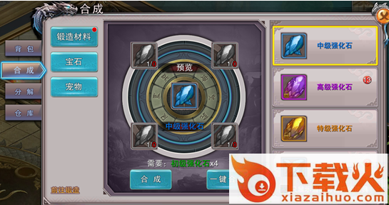 1、在合成系统中,可以将低等级的道具合成为更高等级的道具。