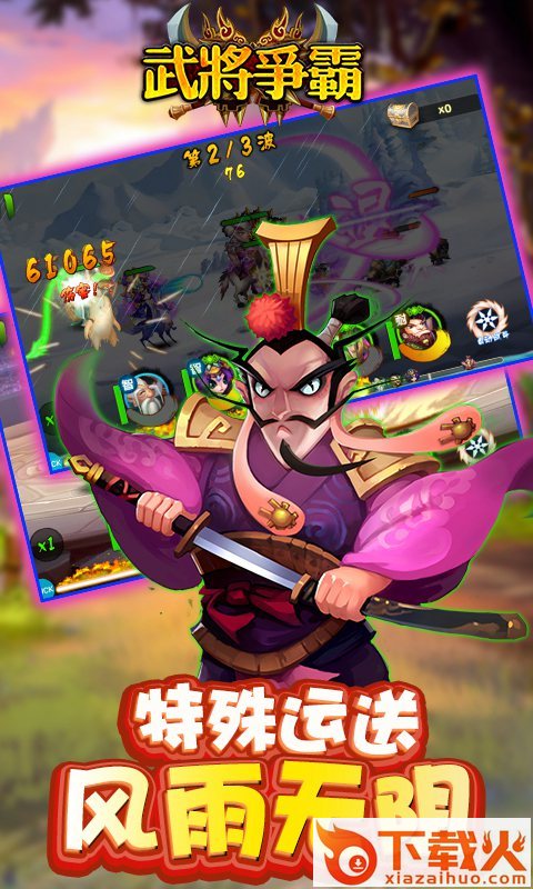 《武将争霸》以穿越类三国为题材,涵盖养成、策略、动作等多种玩法。游戏采用全数字强力引擎,画面逼真细腻,浓郁的国漫画风,蕴含着丰富的中国传统元素,Q萌搞怪的武将形象、幽默风趣的人物对话、碰撞式物理战斗、奇葩另类的绚丽技能,以及丰富的策略玩法等展现气势恢宏的三国战场,让玩家身临其境体验烽火连天的三国峥嵘岁月。