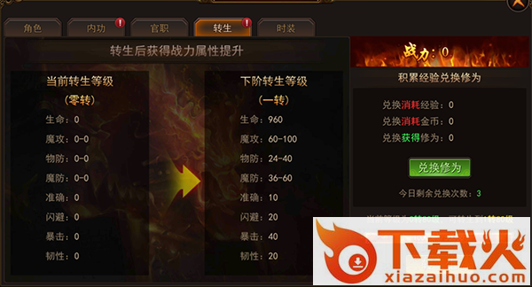 转生后将获得战斗属性的提升,包括生命、职业攻击、物防、魔防、准确、闪避、暴击以及韧性等。