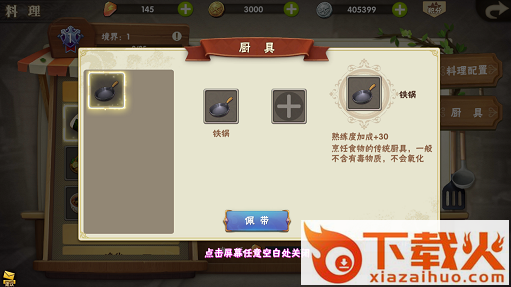 要制作料理,厨具那就是必不可少的,所以在制作料理之前,需要获得厨具并佩带上。佩带厨具可以增加制作料理的熟练度。